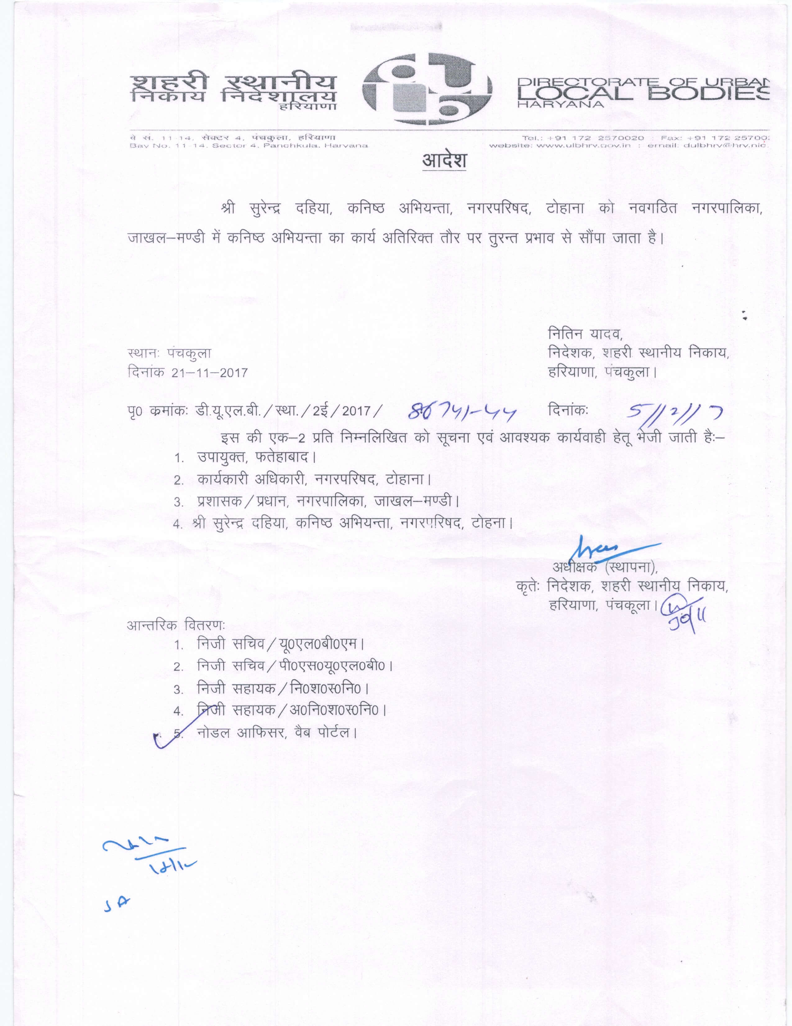 | 10 | Additional charge of Shri Pankaj,JE, Municipal council Kaithal | View | 242 KB/PDF | 12-03-2021 |