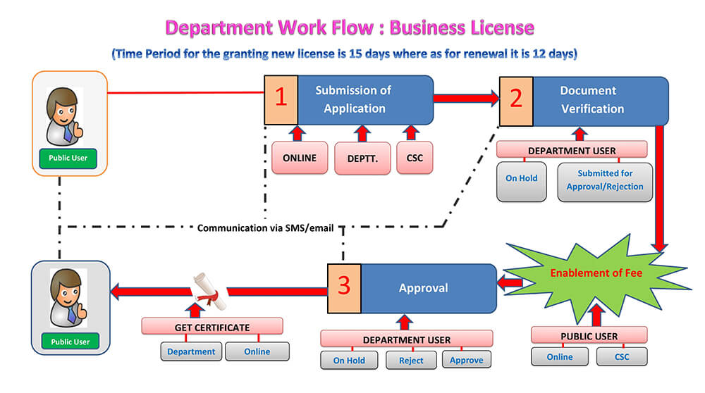 Time Period – Time period for the granting new license is 15 days where as for renewal it is 12 days as per Right to Service Act, 2014.