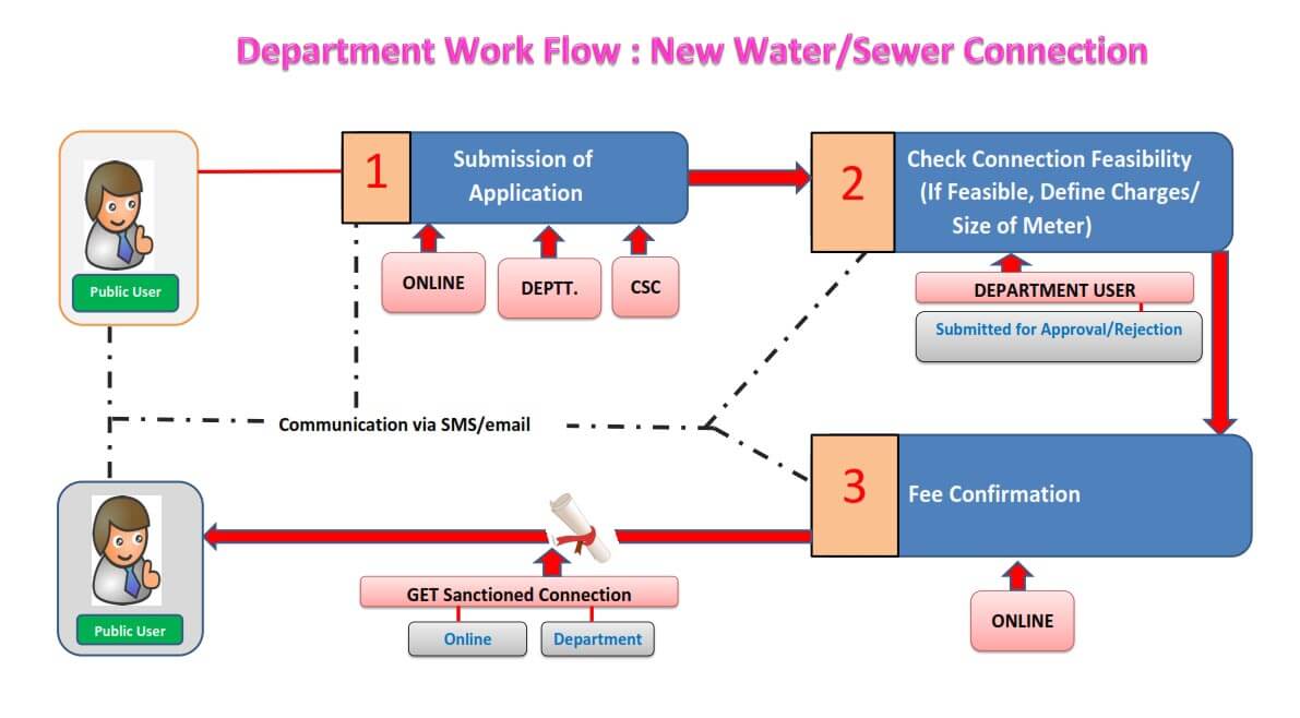 - Citizen can apply for water connection or sewer connection or both in Municipal Corporation Karnal and Sonipat at SARAL portal (Click Here).